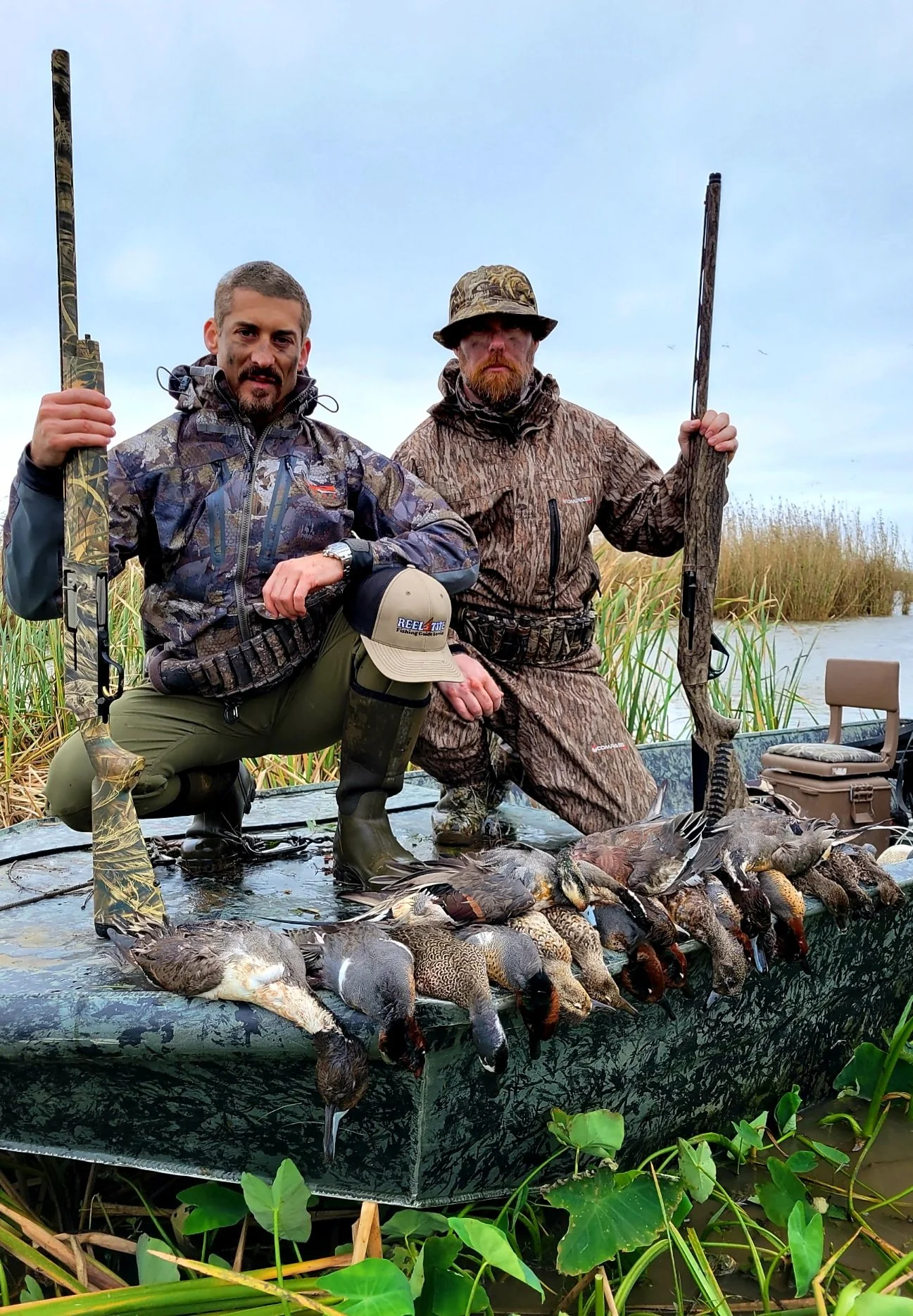 Join Reel Tite for exceptional duck hunting in Venice, Louisiana. Our hunts target a variety of duck species, offering you the ultimate waterfowl hunting experience. On a typical hunt, it is common to bag pintails, gadwalls, wigeons, blue/green-winged teal, mottled ducks, redheads, canvasbacks, shovelers, scaups, ringed necks, and occasionally whistling ducks, buffleheads, mallards, wood ducks, and snow geese.